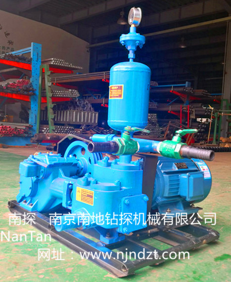 BW-160A型泥漿泵也就是BW160泥漿泵,為臥式單缸雙作用往復活塞式泵,泵頭上裝有四個Ф40鋼球閥,從而提高了壓力。主要用于物探中向爆破孔內提供沖洗液,亦可用于工程地質鉆機基巖鉆進中向井內供給沖洗液,該泵具有體積小、重量輕、耐用等特點,更適合地質勘探上使用。也可以進行水泥注漿、泥漿注漿灌漿等施工。
