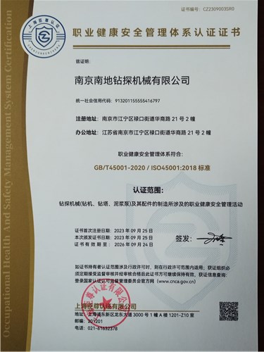 企業通過ISO9001:2015質量管理體系認證、ISO14001:2015環境管理體系認證、ISO45001:2018職業健康安全管理體系認證。